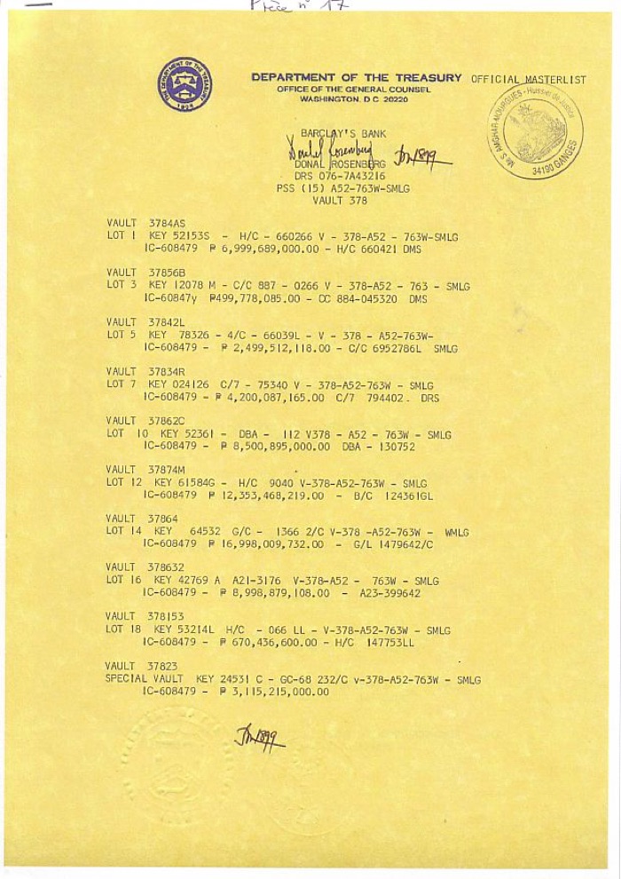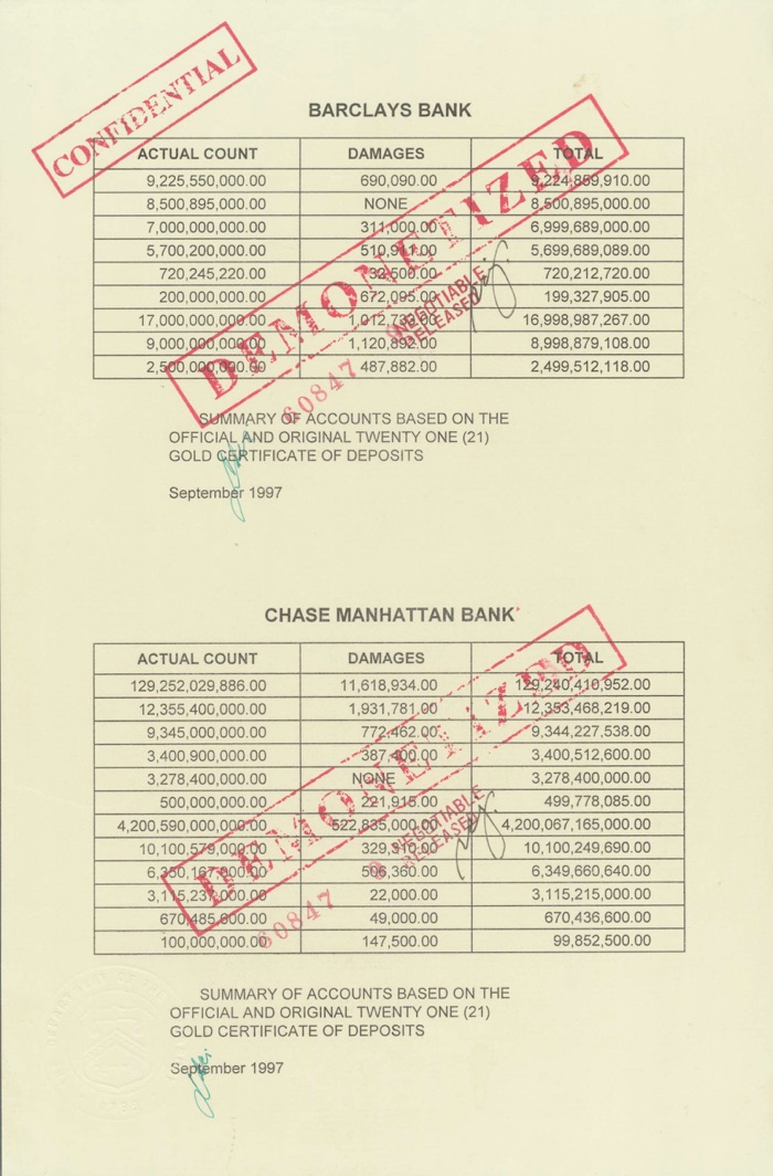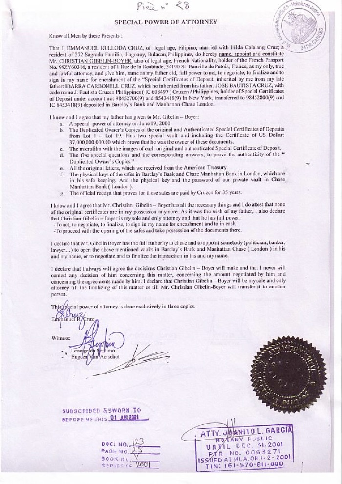 In July 2014 one of Gibelin-Boyers attorneys wrote official letters to Antony Jenkins, CEO of Barclays London, and to Jamie Dimon, Chairman of JP Morgan, to underline his ownership of the Cruzen Philippines vaults in their banks. From then on the ball came rolling!